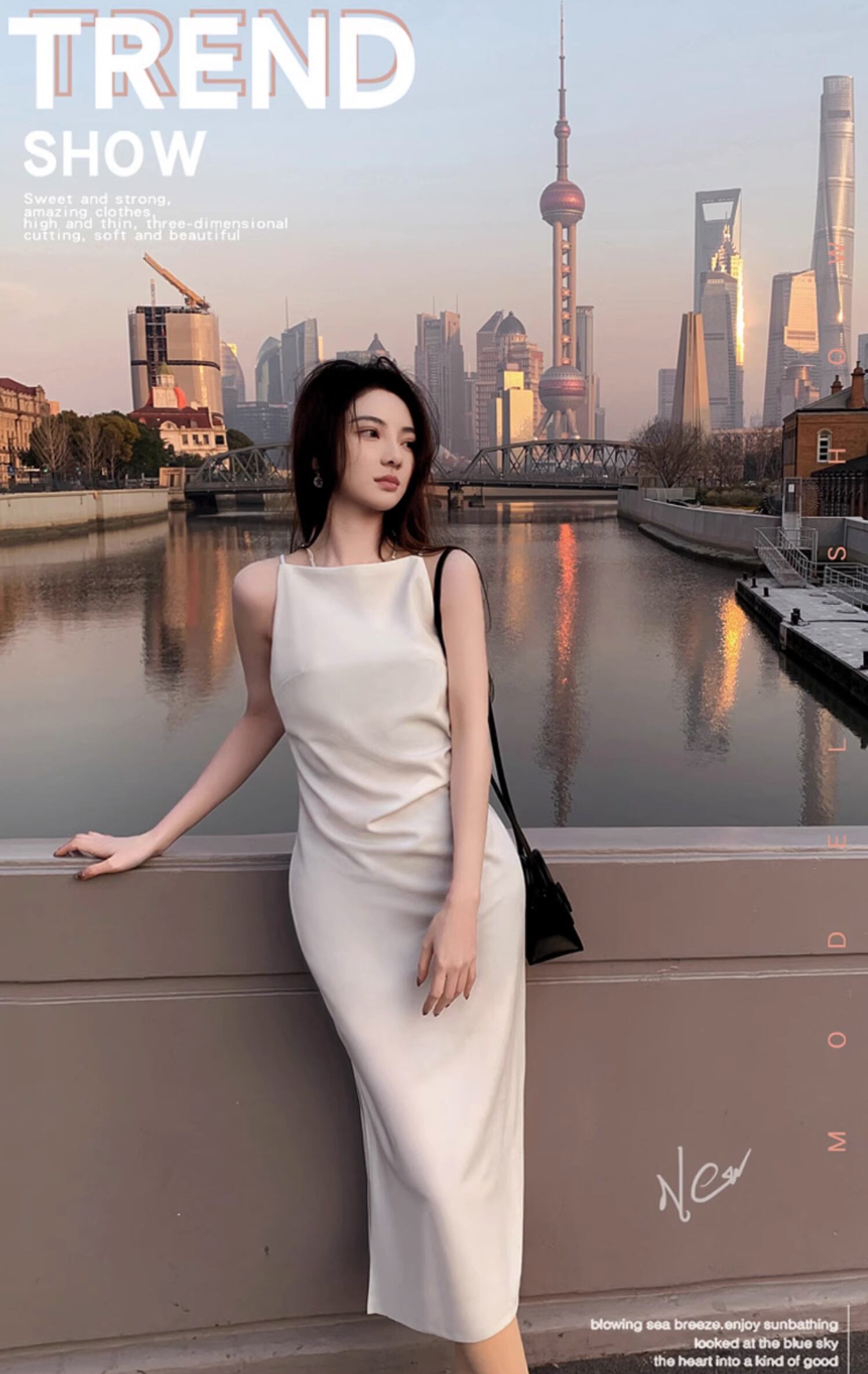 フェミニンで上品なパーティードレスです。深いサイドスリットがセクシーで、ドレープのデザインが女性らしい魅力を引き立てます。シンプルながらも、レトロでこなれ感のあるスタイルがおしゃれです。エレガントな雰囲気で、結婚式やパーティーなどの特別な場にぴったりです。