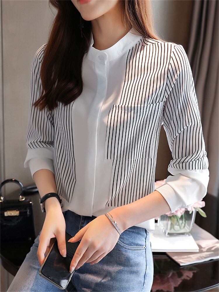 無地切り替え レディース トップス ブラウス ミディアム丈 長袖 襟付き スタンドカラー 配色 きれいめ シンプル カジュアル 上品 おしゃれ かっこいい こなれ感 メンズライク 個性的 クール 存在感 都会的 大人っぽい きちんと感 ジャケットイン 無地 ストライプ 春 冬 ママ 女の子 OL 通勤 学生 学校 通学 デート お出かけ 女子会 休日 ショッピング カフェ 韓国 オルチャン コーデ 体型カバー 普段使い 着回し S M L XL 2XL 大きいサイズ 白 ホワイト 黒 ブラック モノトーン