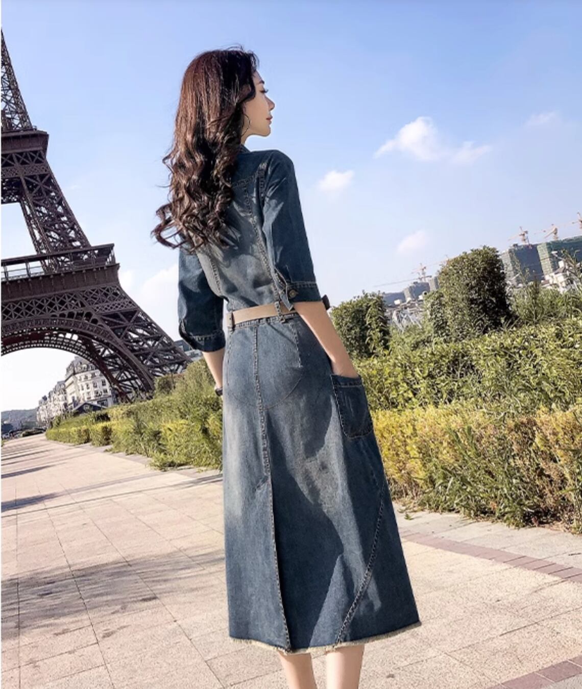 デニムワンピース シャツワンピ レディース ロング 7分袖 襟付き フェミニン ベルト ボタン デニム ブルーデニム かわいい 大人可愛い きれいめ シンプル カジュアル 上品 おしゃれ こなれ感 ガーリー ラブリー キュート 無地 春 夏 ママ オフィス ビジネス OL 通勤 学生 デート お出かけ お泊まり パーティー イベント リゾート 旅行 海 レストラン 女子会 休日 バカンス ショッピング 韓国 オルチャン コーデ 体型カバー 普段使い 着回し モテ 清楚 二の腕カバー M L XL 2XL