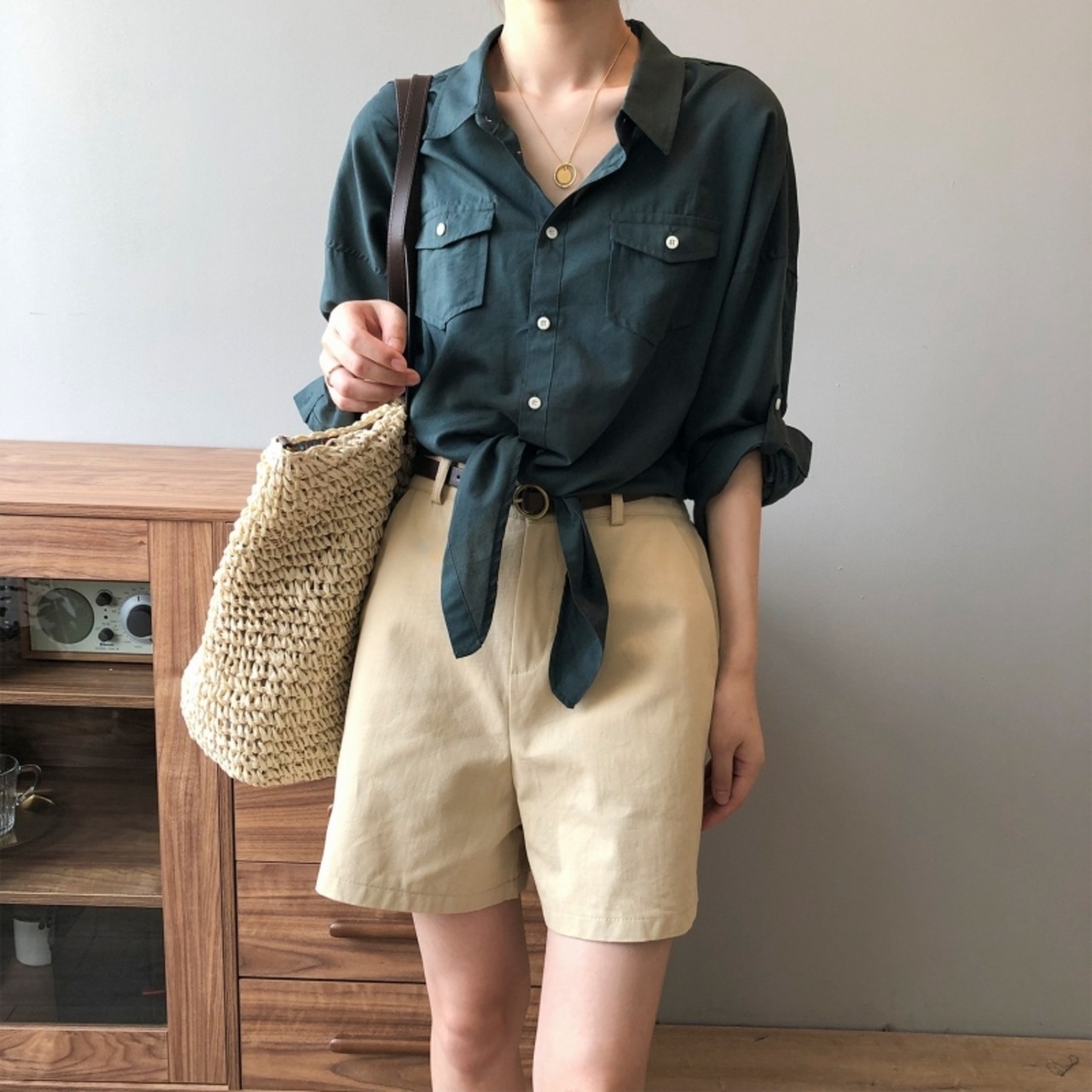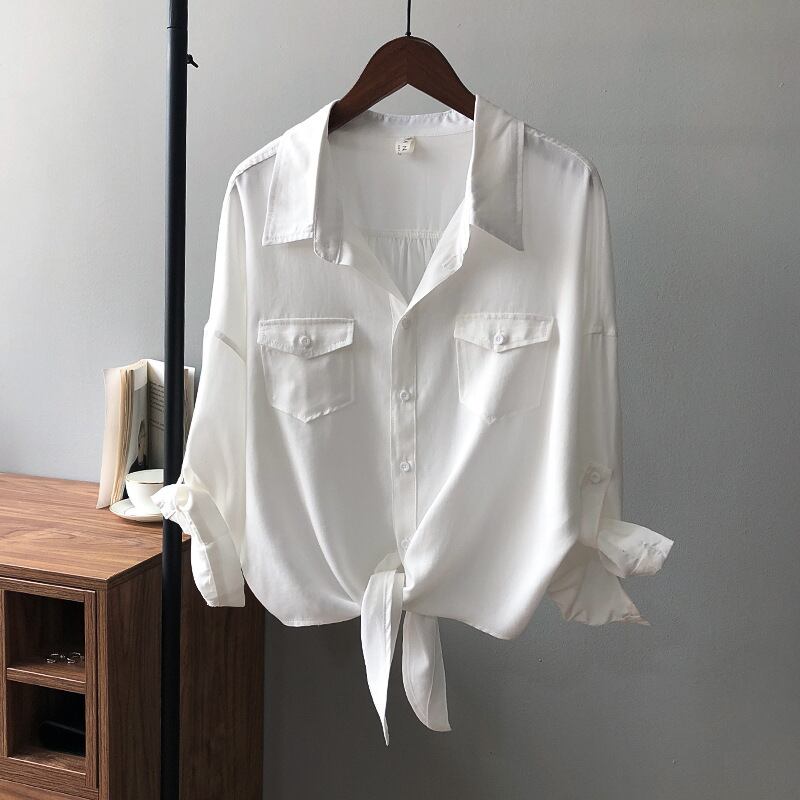 誰でも気軽に取り入れられるカジュアルな7分袖シャツのご紹介です。タックアウトしたシャツの裾をフロントで結ぶ定番デザインがこなれ感を演出。さらに、ゆったりシルエットが、ラフな雰囲気を醸し出します。ぜひ、デートやお出かけ、休日のカジュアルスタイルに取り入れてみてください。