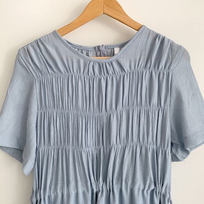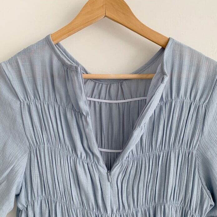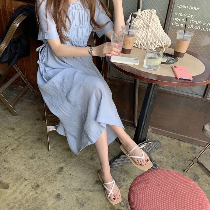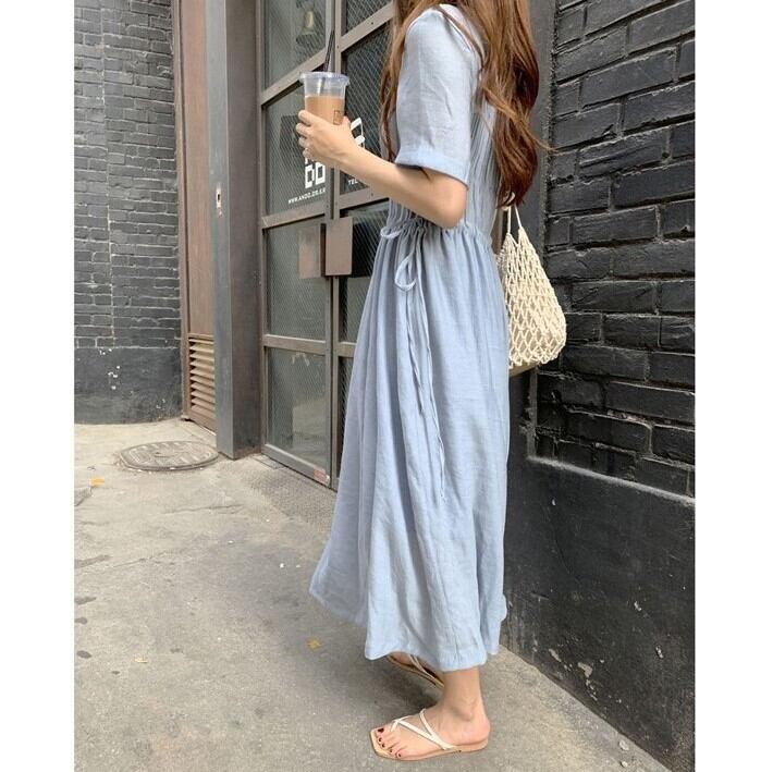 マジョリカプリーツ切り替え サマードレス レディース ワンピース 膝下 ミモレ ミディアム丈 半袖 ドロップショルダー ラウンドネック 襟なし Aライン ウエストドロスト サイドリボン かわいい 大人可愛い きれいめ シンプル カジュアル 上品 おしゃれ こなれ感 ナチュラル フェミニン 清楚 無地 春 夏 ママ 女の子 学生 学校 通学 デート お出かけ リゾート 旅行 ビーチ 女子会 休日 バカンス ショッピング カフェ 韓国 オルチャン コーデ 楽ちん 体型カバー 普段使い ワンサイズ 青 ブルー