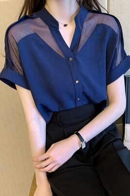 レディース トップス シャツ ブラウス 前開き ストレートパンツ Yシャツ 半袖 フレンチスリーブ ドロップショルダー Vネック 襟付き 角襟 スリム 細身 ストレート Iライン フォーマル フェミニン タック シフォン ポケット 前開き 透け感 シースルー 切り替えデザイン 薄手 綿 コットン かわいい 大人可愛い きれいめ シンプル カジュアル 上品 おしゃれ かっこいい レトロ アジアン エスニック こなれ感 ラフ メンズライク ボーイッシュ ガーリー ルーズ クール モード系 エレガント モダン