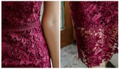レディース ワンピース 膝丈 半袖 Vネック タイト スリム 細身 レース 刺繍 ウエストマーク バックスリット ファスナー ハイウエスト きれいめ 上品 おしゃれ レトロ エレガント 存在感 無地 春 夏 結婚式 二次会 デート お出かけ パーティー イベント レストラン 女子会 休日 ホテル 脚長 S M L XL ワインレッド