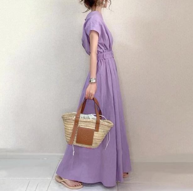 このワンピースは、夏にぴったりの爽やかな印象があります。ナチュラルな無地デザインなので、コーディネートもしやすく、カジュアルにもキレイめにも着こなせます。