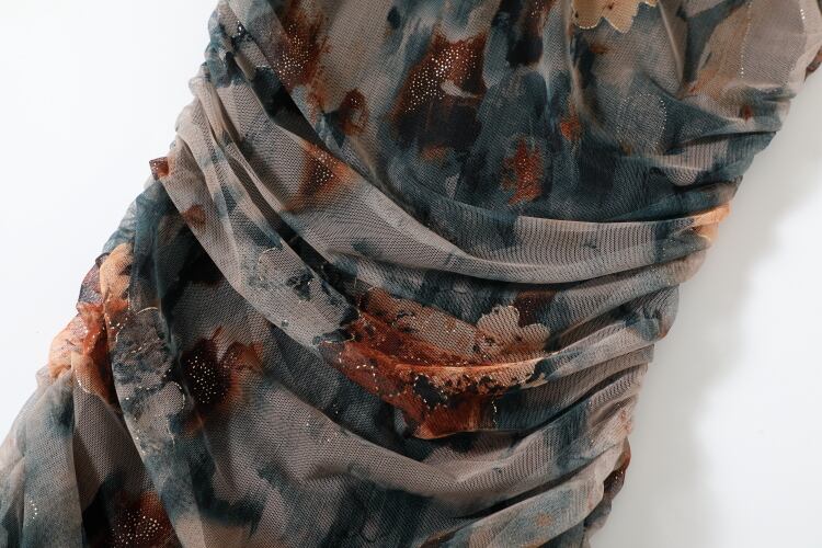 また、異素材ミックスのデザインがさりげない高級感を演出し、存在感のあるフォーマルスタイルを完成させます。さらに、透け感のあるオーガンジー素材が、女性らしい抜け感をプラスしてくれます。