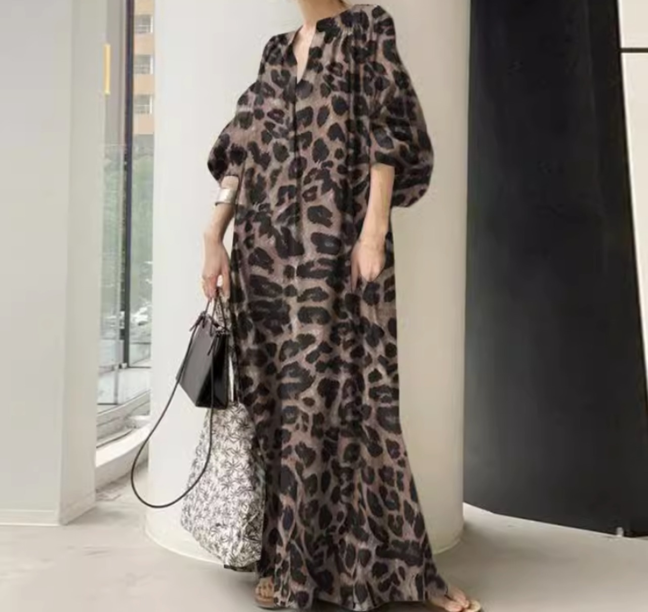 オーバーサイズの魅惑的なヒョウ柄ドレスロングスカート