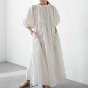 レディース スカート ワンピース ロングスカート ロング マキシ 5分袖 ボリューム袖 パフスリーブ ラウンドネック 襟なし ワイド 薄手 かわいい 大人可愛い きれいめ シンプル カジュアル 上品 おしゃれ レトロ こなれ感 ラフ ルーズ 個性的 主役級 存在感 とろみ感 抜け感 ラブリー ナチュラル 無地 春 夏 マタニティ デート リゾート 旅行 ビーチ 女子会 休日 バカンス カフェ コーデ 楽ちん 体型カバー 普段使い モテ 清楚 S M L XL ビッグ ゆったり ゆる ホワイト カーキ