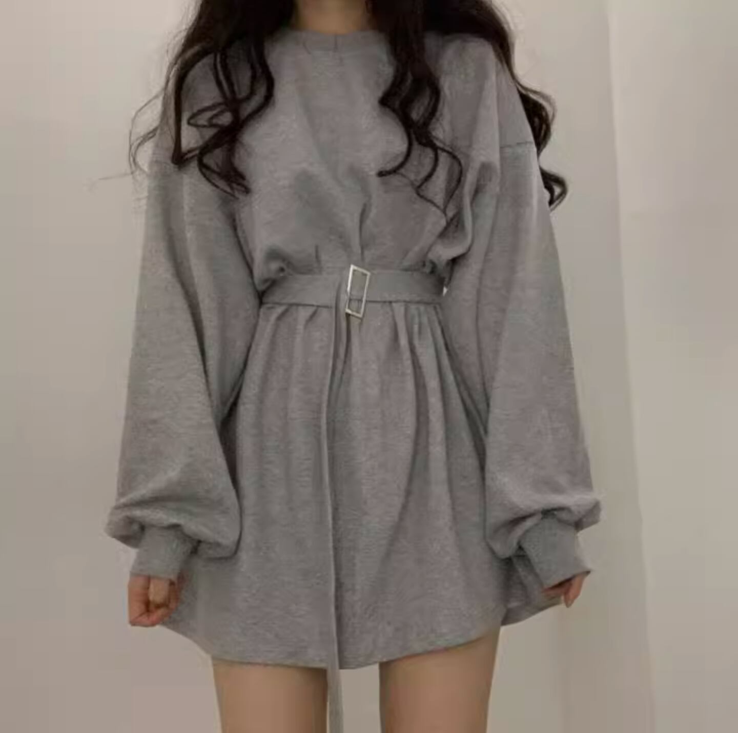 レディース ワンピース チュニック 長袖 ボリューム袖 バルーン袖 ラウンドネック ベルト ウエストマーク かわいい 大人可愛い きれいめ シンプル カジュアル 上品 おしゃれ レトロ ラフ ガーリー ルーズ クール エレガント ラブリー キュート 無地 春 秋 冬 オフィス ビジネス OL 通勤 デート お出かけ お泊まり イベント リゾート 旅行 レストラン 女子会 休日 バカンス ショッピング 重ね着 韓国 オルチャン コーデ 体型カバー 普段使い 着回し レイヤード フリーサイズ ブラック グレー
