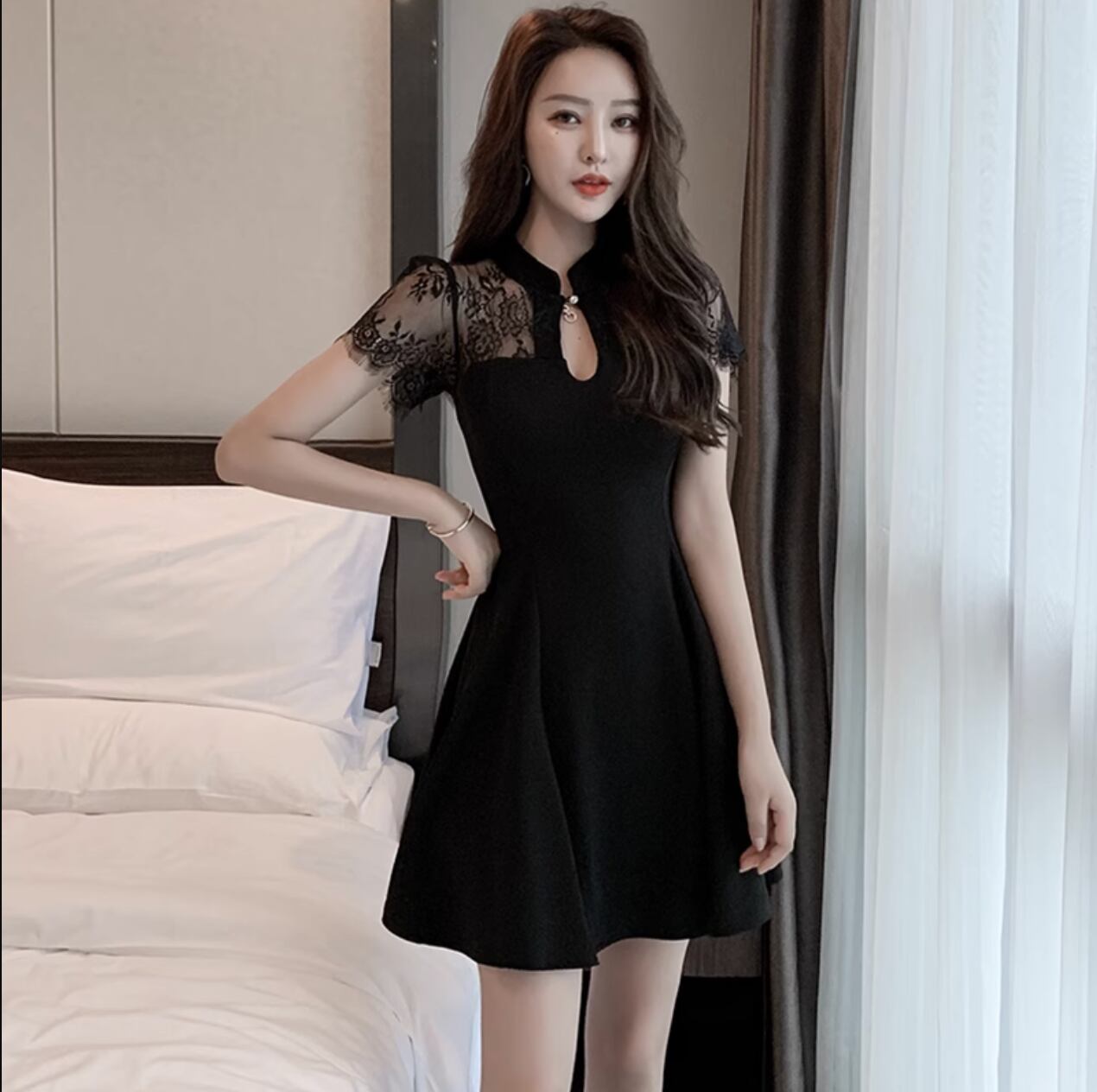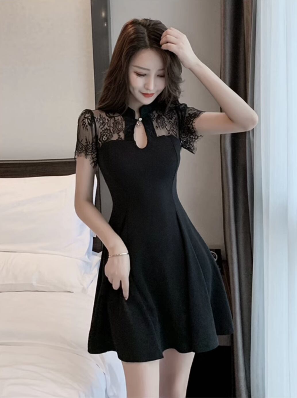 パーティードレス イブニングドレス レディース ミニ 半袖 カットアウト フレア Aライン レース 透け感 シースルー 切り替えデザイン 異素材ミックス 肌見せ かわいい 大人可愛い きれいめ シンプル カジュアル 上品 おしゃれ レトロ こなれ感 個性的 クール エレガント 主役級 存在感 セクシー 花柄 フラワー デート お出かけ パーティー イベント レストラン 休日 ホテル お呼ばれ セレモニー 韓国 オルチャン コーデ 普段使い 着回し モテ インスタ映え S M L XL ブラック