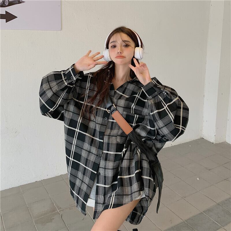 オーバーサイズ ビックシルエット ボーイフレンド風 トップス ブラウス ミディアム丈 チュニック丈 長袖 ボリューム袖 ランタンスリーブ ドロップショルダー 萌袖 襟付き かわいい 大人可愛い シンプル カジュアル おしゃれ こなれ感 チェック 格子柄 春 秋 冬 ママ マタニティ 女の子 学生 学校 通学 デート お出かけ アウトドア 休日 ライブ カフェ フェス 重ね着 韓国 オルチャン コーデ 楽ちん 体型カバー 普段使い 着回し レイヤード M L XL ゆったり ゆる 大きめ ブラック カーキ