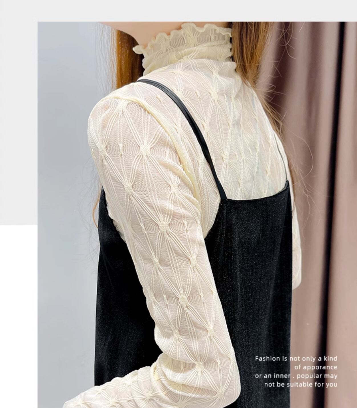 シアートップス レディース インナー 肌隠し ファンデーションインナー レーストップス 長袖 ハイネック レース 透け感 シースルー かわいい 大人可愛い きれいめ シンプル カジュアル 上品 おしゃれ レトロ こなれ感 ガーリー 個性的 エレガント 主役級 存在感 抜け感 ラブリー キュート 春 秋 冬 デート お出かけ お泊まり パーティー イベント リゾート 旅行 海 レストラン ビーチ 休日 重ね着 韓国 オルチャン コーデ 普段使い 着回しレイヤード M L ホワイト ブラック アプリコット