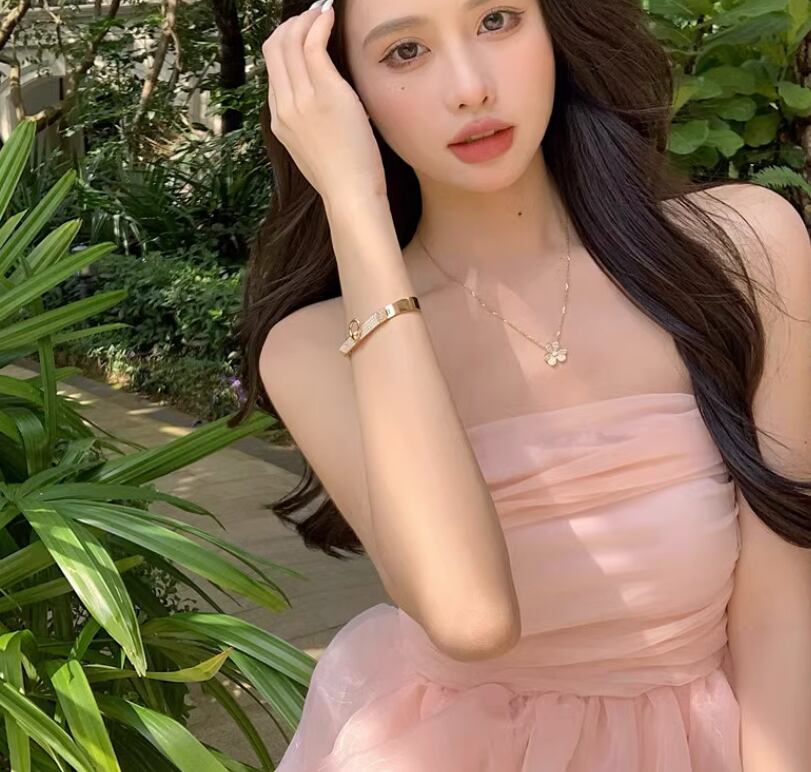 ふんわりとした素材のチューブトップが女性らしいドレス