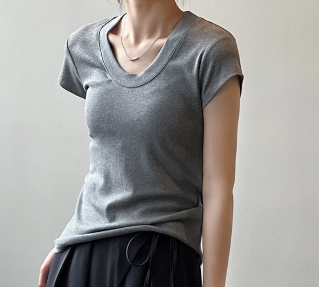 シックなカラーが魅力的な半袖Tシャツ。シンプルなので着回し力抜群のアイテムです。程よく体にフィットするのでスマートなシルエットに見せてくれる一枚。夏らしい花柄のマキシスカート合わせても可愛いです。