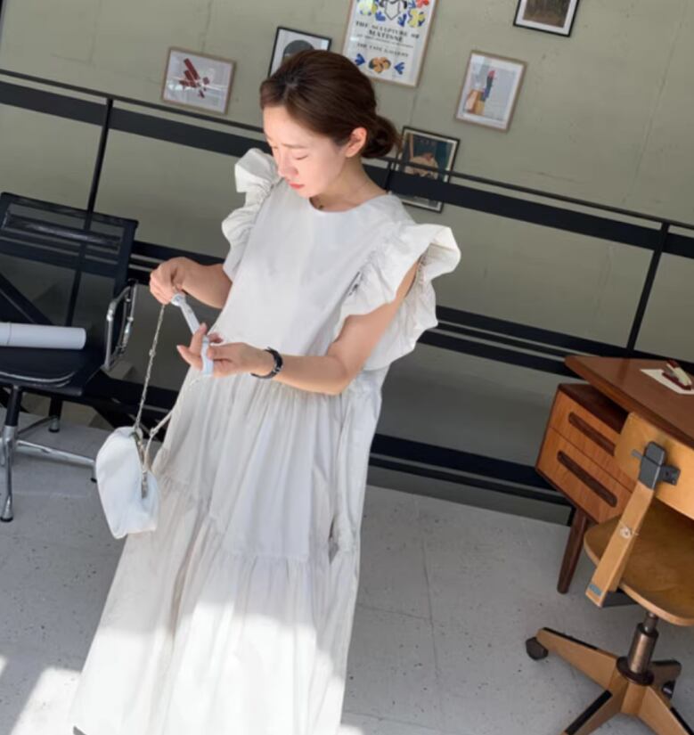 ワンピース モテアイテム デート ロングワンピース フレア フリル ロング丈 コットン かわいい 大人可愛い きれいめ シンプル カジュアル 上品 かっこいい こなれ感 ラフ ガーリー ルーズ エレガント モダン 存在感 抜け感 ベーシック ナチュラル オフィス ビジネス OL 通勤 デート お出かけ お泊まり リゾート 旅行 女子会 休日 バカンス アースカラー モノトーン 重ね着 お揃い 双子 韓国 フリーサイズ ベーシックカラー 大人カラー