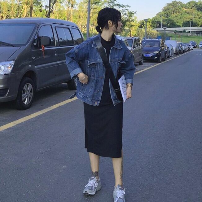 オーバーサイズ レディース ジャケット 上着 Gジャン ミディアム丈 長袖 ドロップショルダー 襟付き フロントボタン ポケット 色落ち感 前開き ウォッシュ加工 デニム シンプル カジュアル 上品 おしゃれ こなれ感 無地 春 秋 冬 ロングシーズン ママ 女の子 通学 デート お出かけ 公園 女子会 休日 ショッピング カフェ 重ね着 韓国 オルチャン コーデ 体型カバー 普段使い 着回し レイヤード 定番 S M L XL 2XL 3XL 4XL 5XL 大きいサイズ ゆったり ブラック ブルー