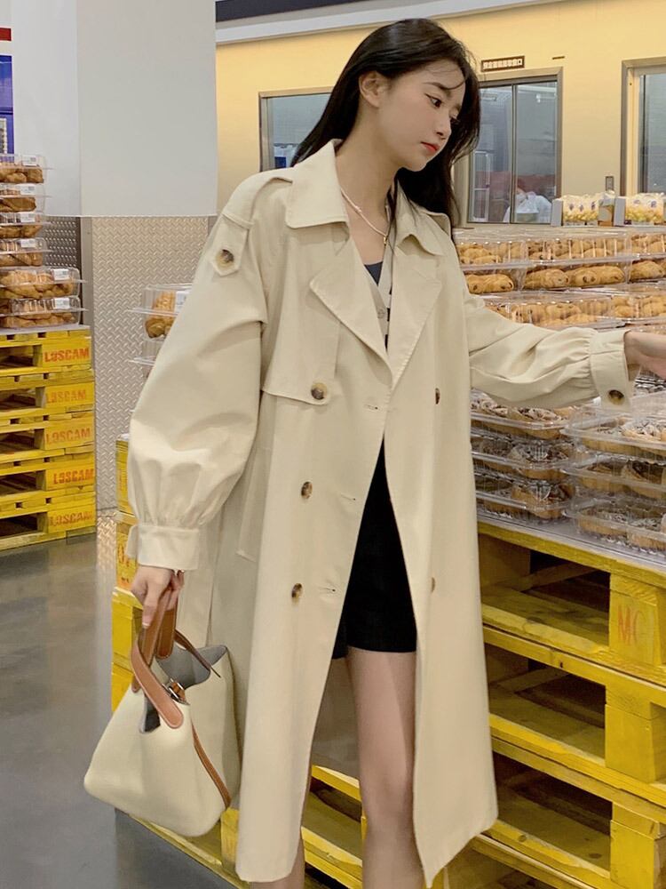 ふんわり袖 オーバーサイズ レディース コート アウター 上着 トレンチ 膝丈 膝上 ミディアム丈 長袖 ボリューム袖 ランタンスリーブ Vネック 襟付き テーラードカラー ウエストマーク ウエストリボン ダブルブレスト ダブルボタン かわいい 大人可愛い きれいめ シンプル 上品 おしゃれ こなれ感 コンサバ 無地 春 秋 ママ 女の子 OL 通勤 学生 通学 デート お出かけ 女子会 休日 韓国 オルチャン コーデ 体型カバー 普段使い 着回し XS S M L XL 小さいサイズ ゆったり カーキ