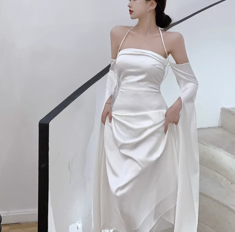 ドレス ワンピース パーティー 演奏会 発表会 ステージ 舞台 キャバ 衣装 演劇 ラウンジ クラブ ロング マキシ 襟なし プリンセスライン スレンダー スリム フレア 細身 Aライン シフォン サテン 薄手 可愛い きれいめ シンプル 大人可愛い 上品 おしゃれ レトロ エキゾチック キュート クール モード エレガント モダン 主役級 存在感 とろみ感 抜け感 クラシック 清楚 ゴージャス エレガント セクシー 華やか ナチュラル クラシカル イベント 無地 高見え 格上げ S M L ホワイト