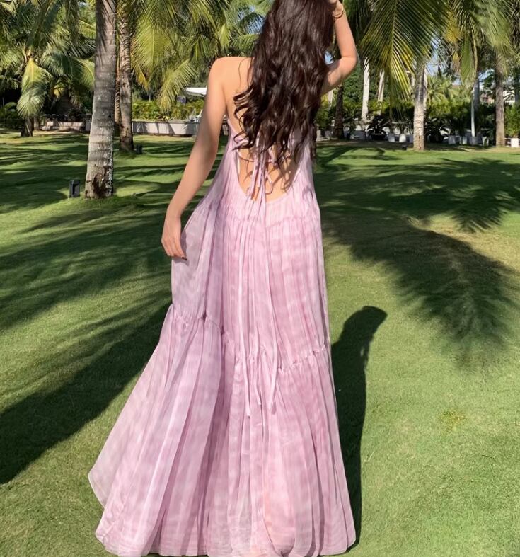 レディース スカート ワンピース フレアスカート ロングスカート ロング マキシ 丈長 袖なし ノースリーブ 襟なし ワイド Aライン 背中開き オーバーサイズ フェミニン リボン バックリボン 異国風 薄手 伸縮性 かわいい 大人可愛い きれいめ シンプル カジュアル 上品 おしゃれ レトロ アジアン こなれ感 ラフ ルーズ 個性的 エレガント 主役級 存在感 とろみ感 抜け感 ラブリー キュート ナチュラル チェック 夏 リゾート プール ビーチ バカンス 体型カバー モテ S M L XL