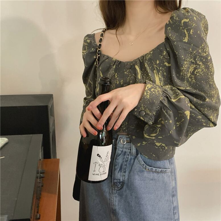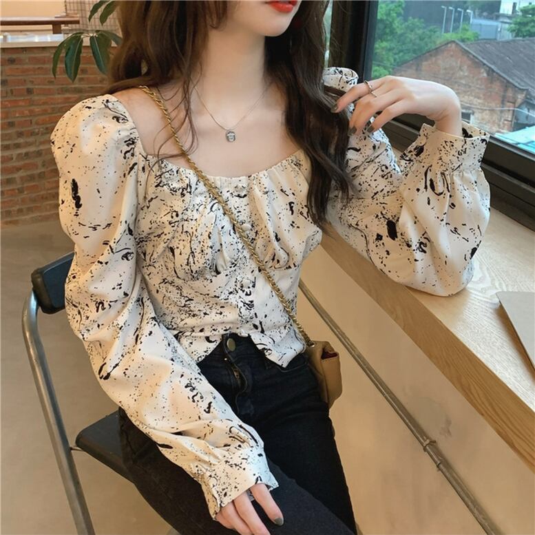ペイント柄シフォンブラウス レディース トップス ブラウス シャツ シフォンブラウス ペイント柄 総柄 スクエアネック 長袖 ペプラムブラウス オフホワイト アッシュグリーン オシャレ シアー 可愛い キレイめ 上品 フェミニン カジュアル デイリー おでかけ 仕事 オンオフ兼用 普段着 コンパクト スマート 細見え スタイルアップ 高見え 新鮮 上級者 主役級 鮮度アップ 軽やか ゆったり 体型カバー インスタ映え トレンド アースカラー 通勤