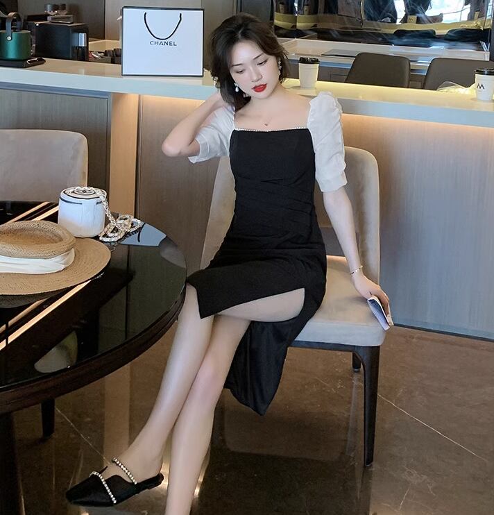 ドレス ドレスワンピース ミモレ 半袖 スクエアネック タイト スリム 細身 ストレート Iライン スリット ハイウエスト かわいい 大人可愛い きれいめ シンプル 上品 おしゃれ かっこいい レトロ クール モダン セクシー 無地 夏 二次会 レディース 女性用 女の子 10代 20代 デート お出かけ パーティー イベント リゾート レストラン 女子会 バカンス ホテル ガーデン ショッピング 発表会 コンサート カフェ モノトーン ディナー 重ね着 普段使い モテ S M L XL ブラック