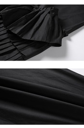 また、素材の選び方やディテールにもこだわりました。軽やかな肌触りの薄手の生地を使用し、着心地も快適です。さらに、個性的なスタンドカラーのフリルなどのディテールが、おしゃれなアクセントとなっています。