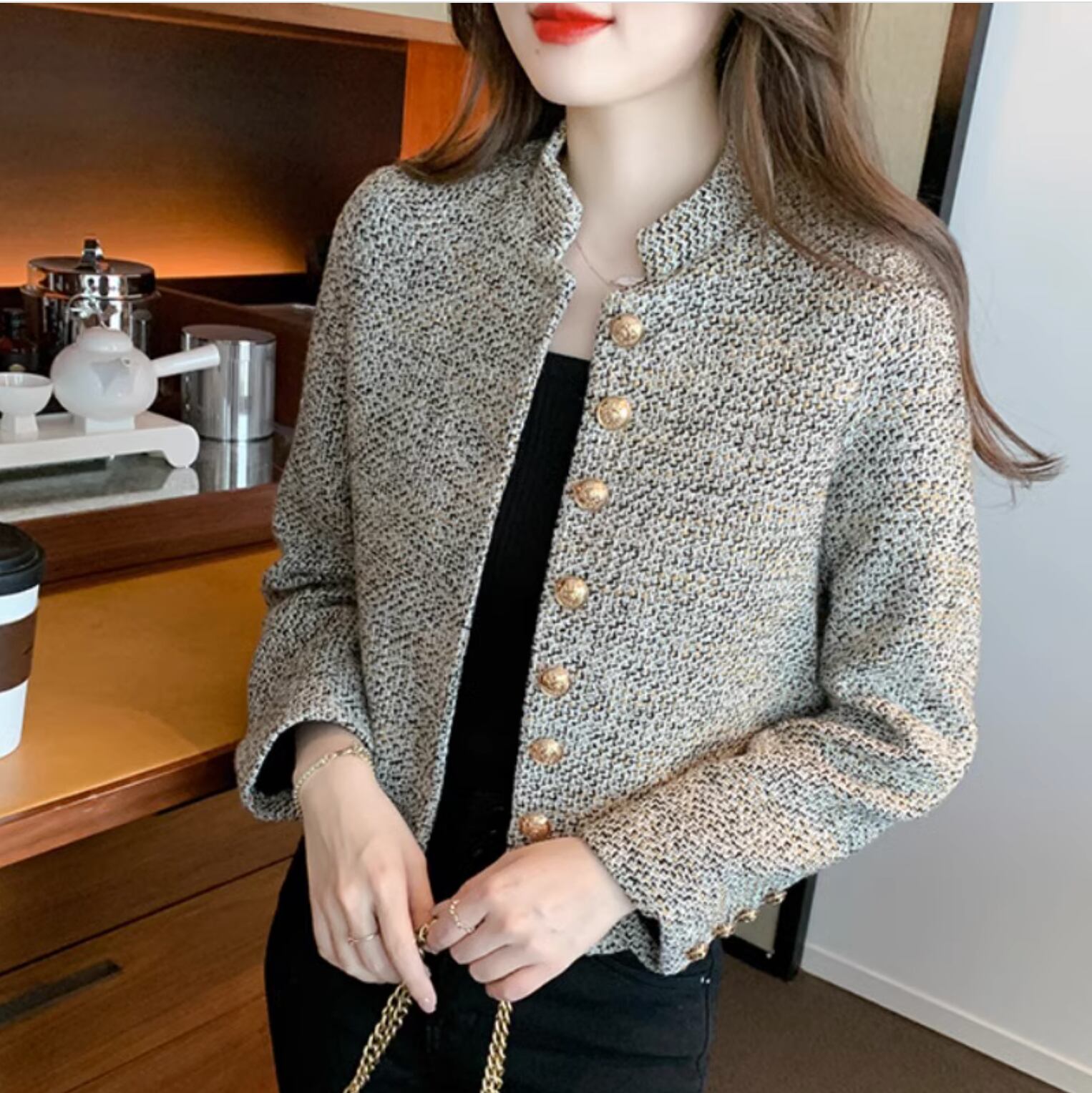 レディース ジャケット アウター ショート 長袖 スタンドカラー フロントボタン ツイード かわいい 大人可愛い きれいめ シンプル カジュアル 上品 おしゃれ レトロ こなれ感 クール エレガント 主役級 存在感 フォーマル 高級感 高見え 無地 秋 冬 ママ オフィス ビジネス OL 通勤 デート お出かけ お泊まり パーティー イベント リゾート 旅行 レストラン 休日 バカンス ホテル ショッピング お呼ばれ セレモニー 暖かい 防寒 体型カバー 普段使い 着回し 定番 S M L XL