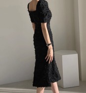 ミディアム丈のフレアワンピース。