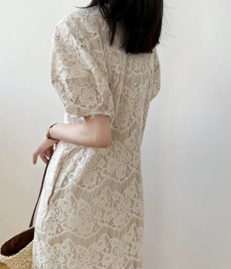 レディース ワンピース ミモレ ロング 半袖 ラウンドネック ノーカラー フェミニン レース 刺繍 レースアップ 透け感 異国風 かわいい 大人可愛い きれいめ シンプル カジュアル 上品 おしゃれ ガーリー エレガント ラブリー キュート ラグジュアリー ナチュラル シック 高級感 芸術的 清潔感 爽やか 涼しげ 女性らしい 優しい 夏 10代 20代 30代 40代 OL 学生 デート お出かけ イベント 旅行 海 休日 お祭り 花火大会 普段使い モテ 清楚 M L ゆったり オフホワイト