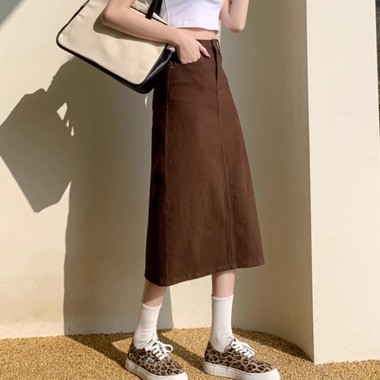 レディース スカート ロングスカート 膝下 ミモレ Aライン スリット バックスリット ハイウエスト ボタン かわいい 大人可愛い きれいめ シンプル カジュアル 上品 おしゃれ かっこいい レトロ アジアン こなれ感 ラフ 個性的 クール 主役級 存在感 抜け感 ヴィンテージ ラブリー キュート 都会的 カレッジ風 学生風 ベーシック アメリカン アクティブ ナチュラル 無地 春 夏 秋 学生 デート お出かけ 旅行 女子会 休日 バカンス カフェ コーデ 楽ちん 美脚 脚長 普段使い S M ブラウン
