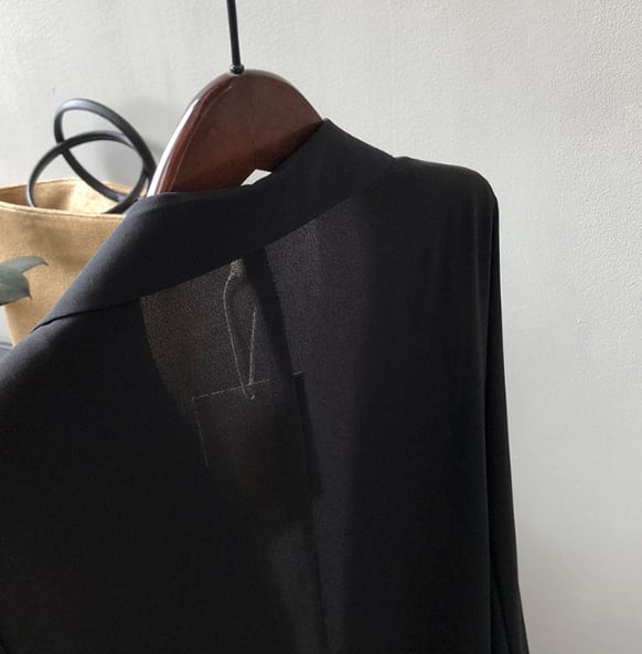 春、夏の日焼け対策や冷房対策のアイテムにぴったりな薄手の長袖ジャケット。透け感があり涼しげで、ブラックカラーでも重たい印象にならず柔らかな印象にしてくれます。シンプルなので着回し力抜群。ビジネスシーン、プライベート問わず着回し力抜群のアイテムです。
