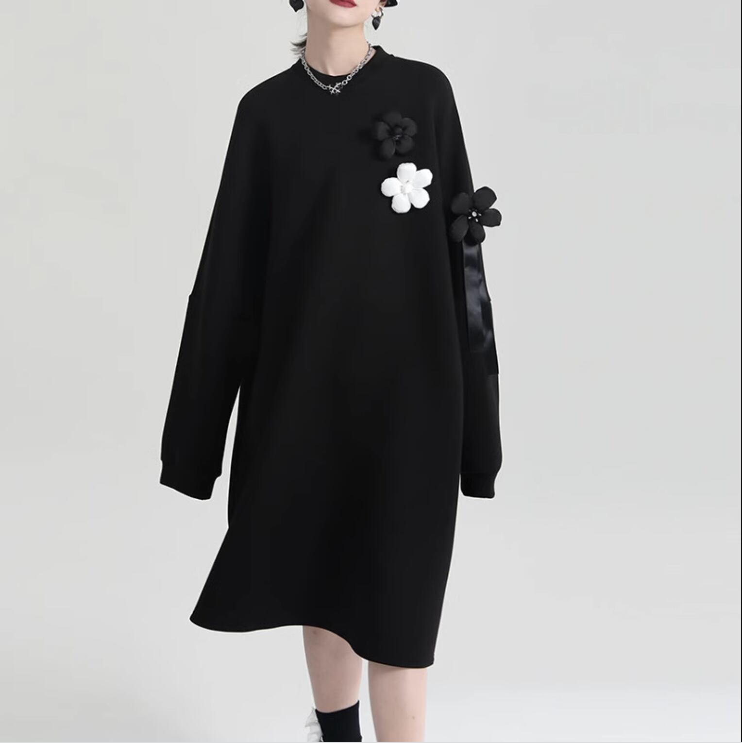 ワンピース レディース スウェット 膝下 長袖 萌袖 ラウンドネック フェミニン かわいい 大人可愛い きれいめ シンプル カジュアル 上品 おしゃれ レトロ こなれ感 ラフ ガーリー ルーズ 個性的 モード系 エレガント フォーマル 無地 春 秋 オフィス ビジネス OL 通勤 学生 デート お出かけ お泊まり イベント リゾート 旅行 女子会 休日 ショッピング ライブ 重ね着 韓国 オルチャン コーデ 体型カバー 普段使い 着回し レイヤード ゆったり ゆる フリーサイズ ホワイト ブラック
