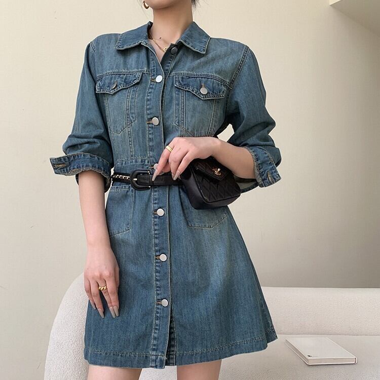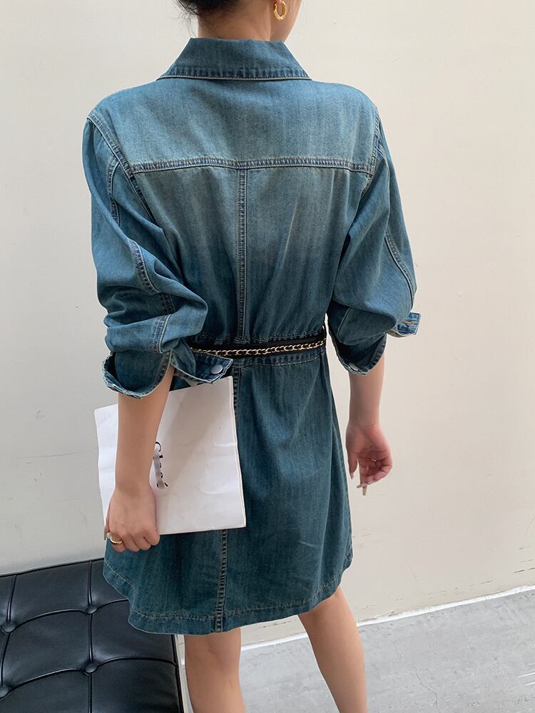ウエストシェイプ レディース ワンピース マイクロミニ ミニ 膝上 長袖 襟付き Aライン 前開き シルバーボタン 胸フラップポケット ブルーデニム かわいい 大人可愛い シンプル カジュアル 上品 おしゃれ かっこいい こなれ感 ラフ キュート ベーシック アクティブ 無地 春 秋 冬 学生 学校 通学 デート お出かけ 旅行 女子会 休日 ショッピング ライブ お花見 カフェ 重ね着 韓国 オルチャン コーデ 体型カバー 脚長 普段使い レイヤード 定番 足見せ S M L XL ゆったり 青 ブルー
