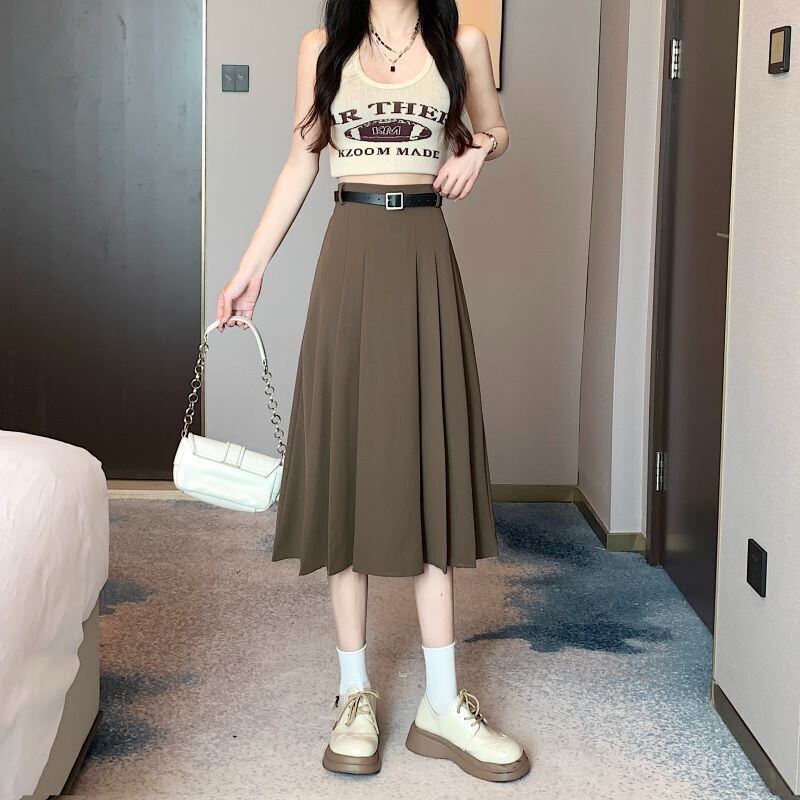 フロントタックプリーツ レディース スカート ボトムス 膝丈 膝下 ミモレ ミディアム丈 Aライン プリーツ タック ハイウエスト 切り替えデザイン バックウエストゴム かわいい 大人可愛い きれいめ シンプル 上品 おしゃれ エレガント 学生風 フェミニン 無地 春 夏 ママ 女の子 OL 通勤 学生 学校 通学 デート お出かけ レストラン 女子会 休日 ショッピング カフェ 韓国 オルチャン コーデ 体型カバー 脚長 普段使い 着回し 清楚 S M L ブラック ブラウン グレー ベージュ カラバリ