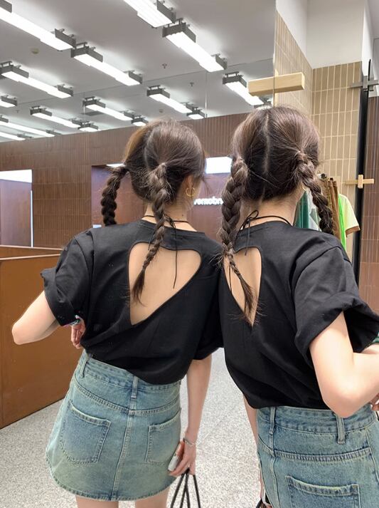 トップス シャツ ミディアム 半袖 ラウンドネック 細身 ストレート 背中開き かわいい 大人可愛い きれいめ シンプル カジュアル おしゃれ かっこいい レトロ ボーイッシュ スポーティー ルーズ クール ナチュラル 無地 夏 レディース 女性用 女の子 10代 20代 通勤 通学 デート お出かけ リゾート 旅行 海 プール ビーチ ジム 公園 女子会 休日 バカンス ガーデン ショッピング カフェ 重ね着 楽ちん 体型カバー 普段使い 着回し ゆったり ゆる フリーサイズ ホワイト ブラック