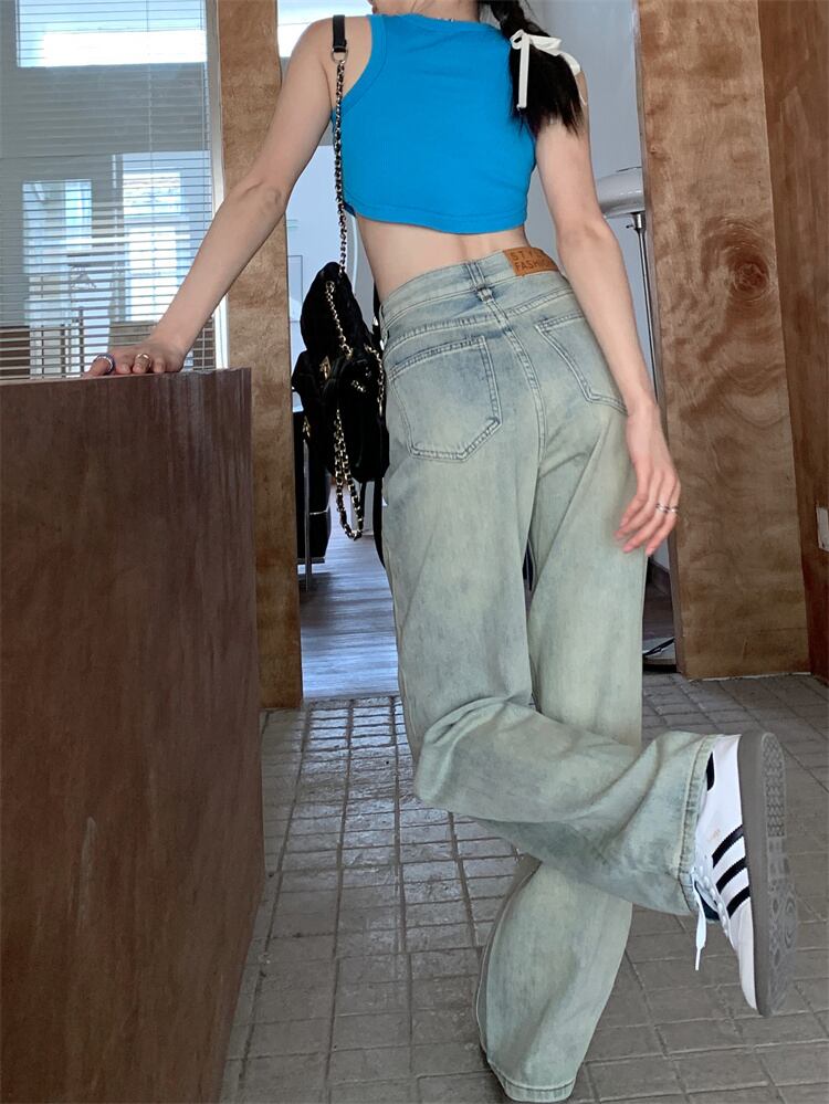 ハイウォッシュ加工 ワイドレッグパンツ レディース パンツ ボトムス Gパン ストレートパンツ デニムパンツ ロング フルレングス ワイド ストレート 色落ち感 デニム シンプル カジュアル おしゃれ こなれ感 ラフ メンズライク ルーズ ヴィンテージ アメカジ 無地 春 夏 秋 冬 オールシーズン シーズンレス ママ 女の子 学生 学校 通学 デート お出かけ 女子会 休日 ショッピング ライブ フェス 韓国 オルチャン コーデ 体型カバー 普段使い 着回し XS S M L XL 小さいサイズ ブルー