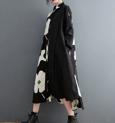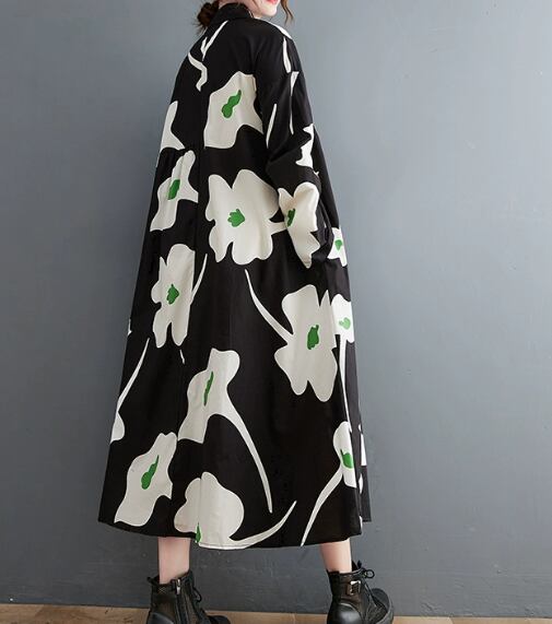 レディース ワンピース シャツワンピ ロング 長袖 襟付き 角襟 ワイド フェミニン 前開き かわいい 大人可愛い カジュアル おしゃれ かっこいい レトロ こなれ感 ラフ ルーズ 個性的 クール モード系 エレガント モダン 存在感 ラブリー キュート ラグジュアリー シック 高級感 芸術的 華やか ユニーク 女性らしい リラックス 花柄 フラワー 春 秋 20代 30代 40代 50代 デート お出かけ 体型カバー 普段使い 着回し インスタ映え ビッグ ゆったり フリーサイズ 大きめ ブラック