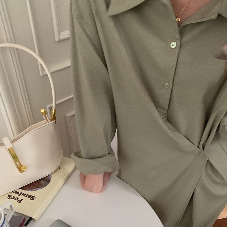 知的で上品な雰囲気漂うサイドボタン付きシャツワンピースのご紹介です。アシンメトリーデザインが特徴であり、シャツカラーとサイドのボタンが上品さを引き立てます。一枚でさっと着るだけで、女性らしさを引き出せるサイドボタン付きシャツワンピースは、デイリーカジュアルからちょっぴりフェミニンなシーンまで、オールシーズン・オールマイティに対応。ベルトでウエストマークすれば、スタイルアップも叶います。