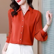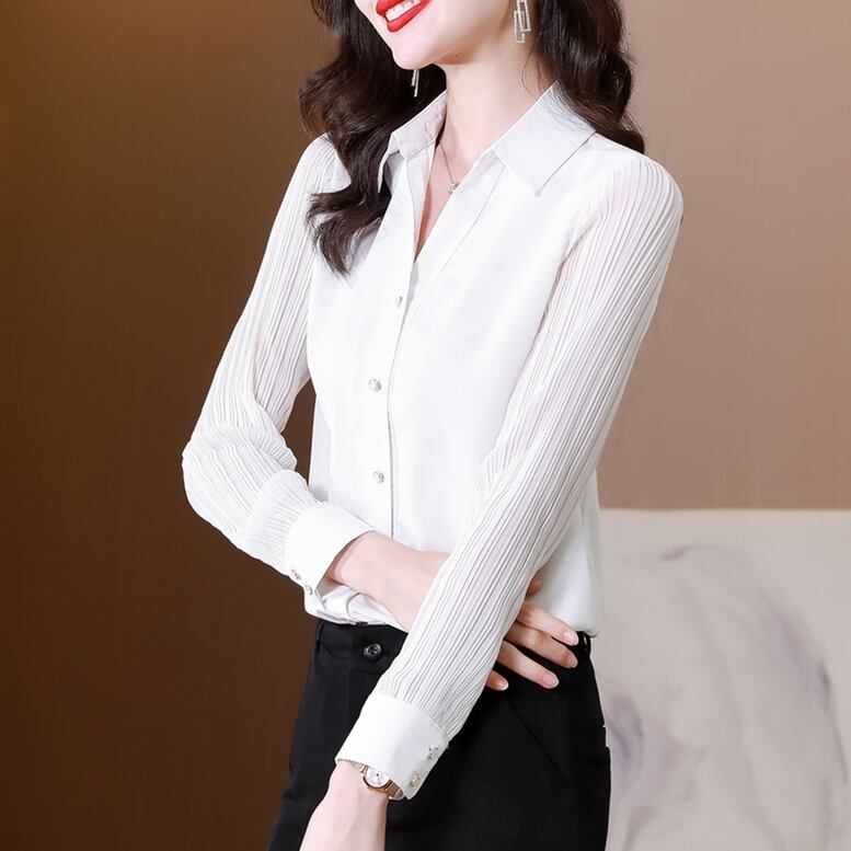 トレンド感と女性らしさが感じられるプリーツ袖とろみシャツ。袖コンシャスなデザインがおしゃれで、シンプルながらも上品さを演出します。サテン素材の光沢感が、知的でフェミニンな雰囲気を醸し出します。襟付きできちんと感もあり、オフィスやおでかけシーンにもぴったりです。シャツの特長は、体型をカバーし、スタイルをより美しく見せる効果もあります。女性ならではの魅力を引き出してくれる、主役級のシャツです。どんなコーディネートにも合わせやすく、幅広いシーンで活躍してくれることでしょう。