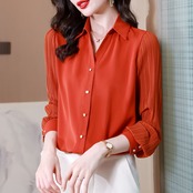 プリーツ袖とろみシャツ レディース トップス シャツ ブラウス 袖コンシャス プリーツ袖 とろみシャツ サテンブラウス 襟付き 長袖 切り替えシャツ 無地 オレンジ ホワイト ネイビー オシャレ シンプル きちんと感 可愛い キレイめ 上品 フェミニン シック 知的 ハンサム カジュアル デイリー おでかけ 仕事 オンオフ兼用 普段着 機能性 スマート 細見え スタイルアップ 高見え 新鮮 主役級 鮮度アップ 上級者 ゆったり 体型カバー インス