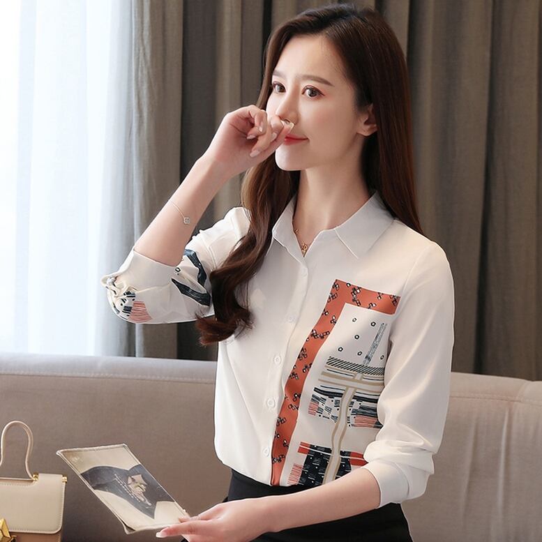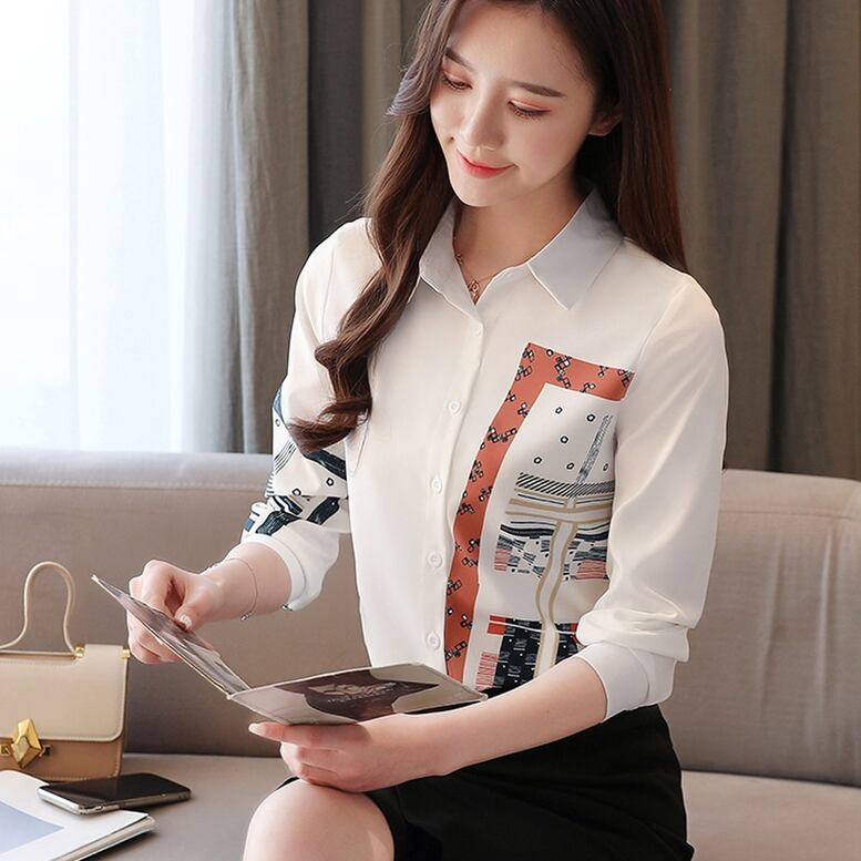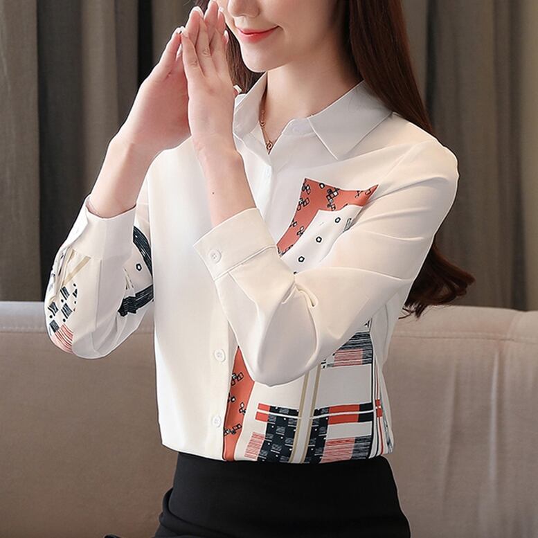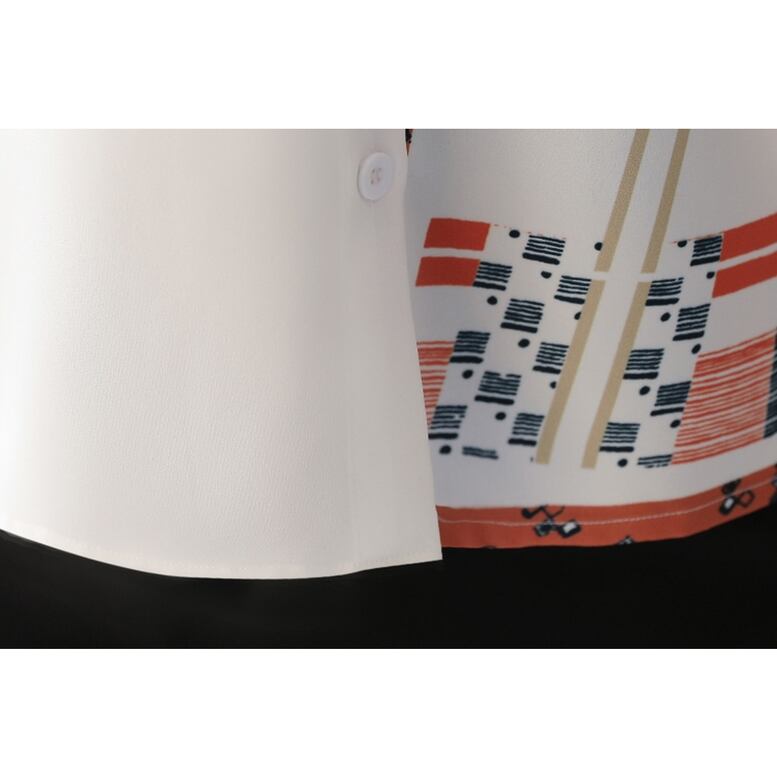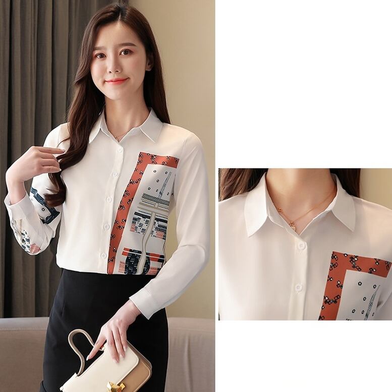 アシンメトリープリントシャツ レディース シャツ プリント ブラウス 長袖 襟付き ジオメトリック 長袖シャツ 襟付きシャツ アシメシャツ ホワイト オシャレ シンプル きちんと感 可愛い キレイめ 上品 フェミニン トラッド シック 知的 ハンサム カジュアル デイリー おでかけ 仕事 オンオフ兼用 普段着 万能 スマート 細見え スタイルアップ 高見え 新鮮 主役級 鮮度アップ 上級者 ゆったり 体型カバー インスタ映え トレンド オフィス