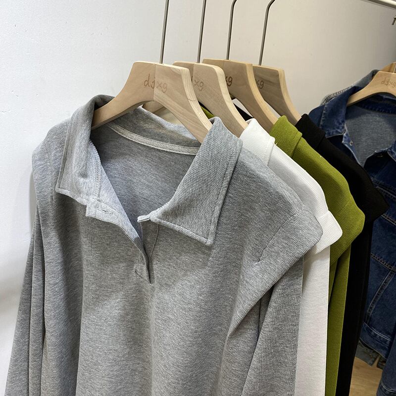 オーバーサイズ ビックシルエット レディース トップス トレーナー スウェット フェイクレイヤード ミディアム丈 長袖 ウイングショルダー 襟付き ポロカラー ドッキング 首元ボタン かわいい 大人可愛い シンプル カジュアル 上品 おしゃれ こなれ感 メンズライク ルーズ 無地 春 秋 ママ マタニティ 女の子 学生 学校 通学 お出かけ 公園 女子会 休日 重ね着 韓国 オルチャン コーデ 楽ちん 体型カバー 普段使い 着回し ビッグ ゆったり ゆる フリーサイズ ブラック グレー グリーン カラバリ