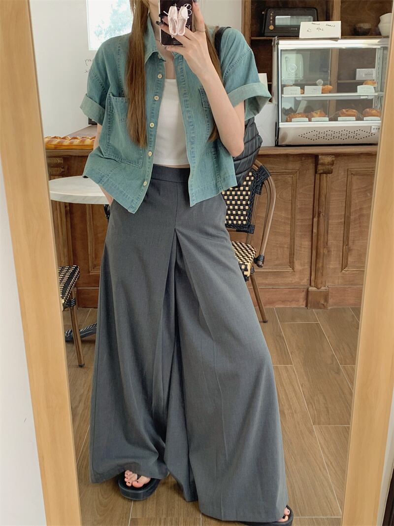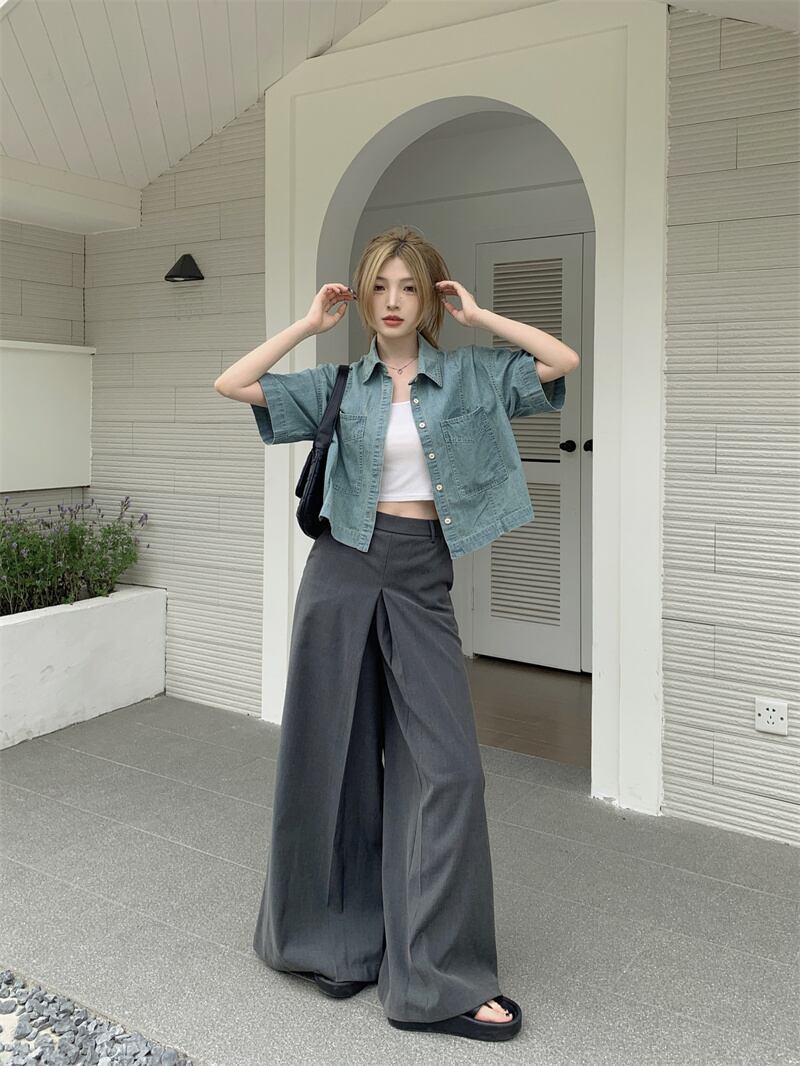 爽やかな半袖デニムシャツをご紹介します。ワイドなシルエットと前開きのデザインで、着心地抜群です。キュートでありながら大人っぽいスタイルを叶えてくれます。さらに、着回し力もありながら、体型をカバーしてくれることもポイントです。明るすぎないくすんだライトブルーが大人女子にぴったりの一枚ですので、ぜひお試しください。