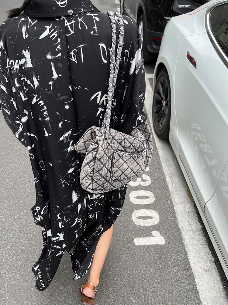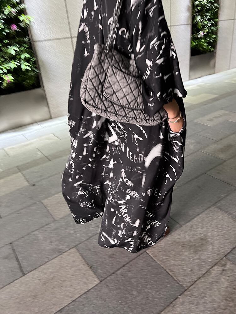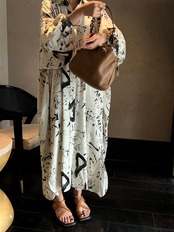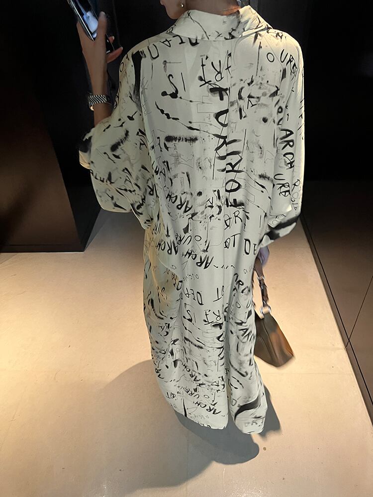 沢山の英字ロゴがかっこいいロング丈のシャツワンピースです。ボリューム感のあるシルエットで体型カバーをしながら、抜け感とこなれ感を与えてくれます。都会的でモダンな雰囲気を演出しながらも、キュートさも忘れていません。華やかなデザインで、お洒落な着こなしを演出してくれます。