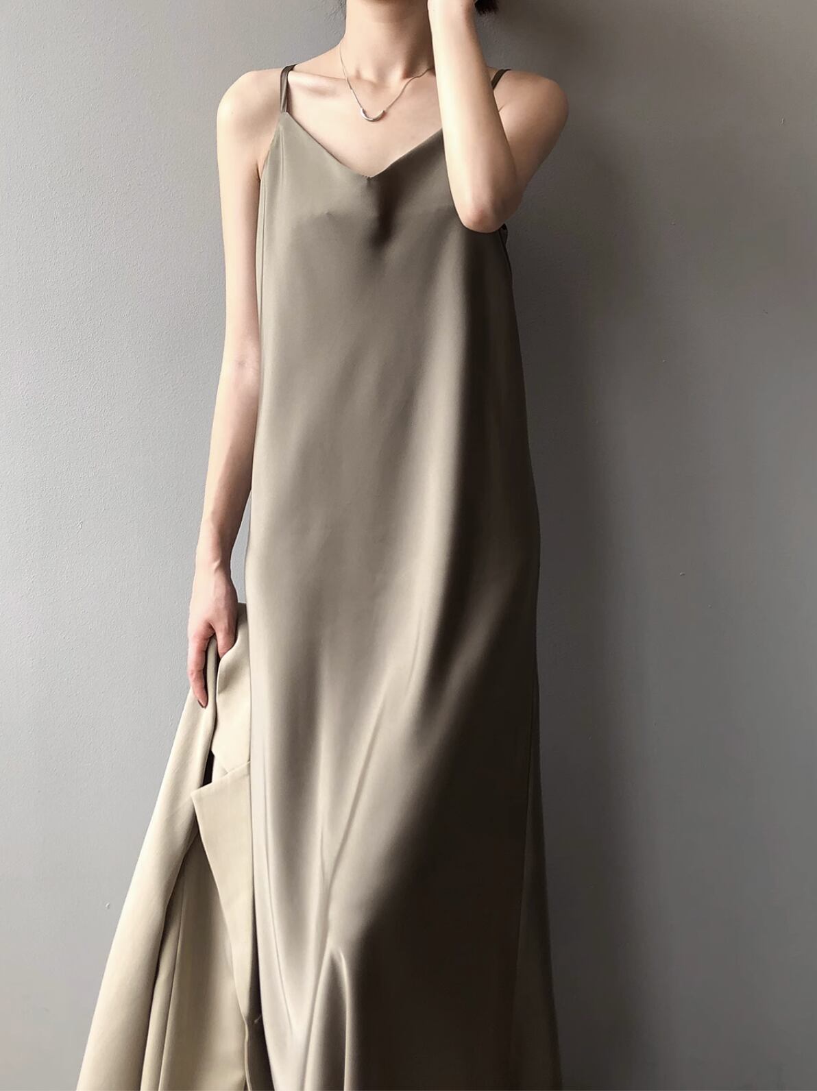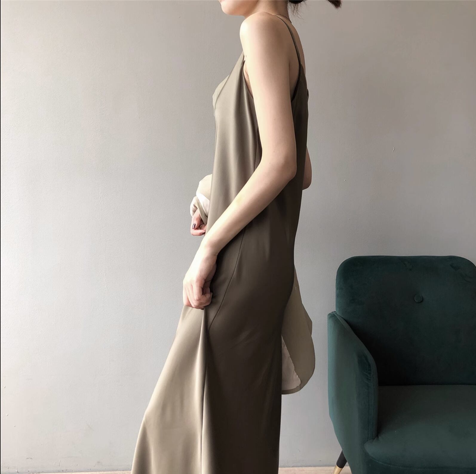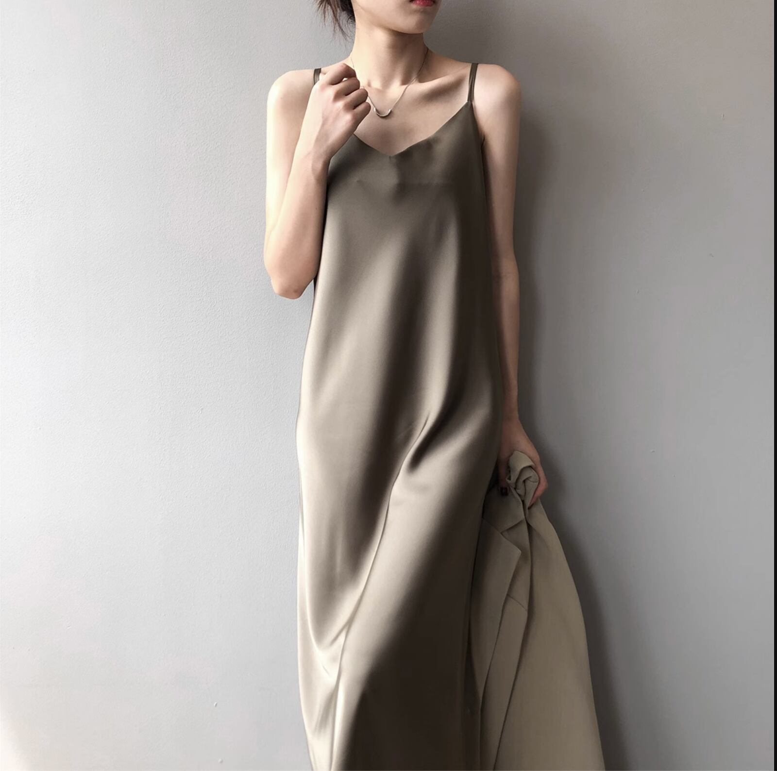 サテンワンピース レディース キャミワンピ ドレス ロング マキシ 袖なし ノースリーブ かわいい 大人可愛い きれいめ シンプル カジュアル 上品 おしゃれ こなれ感 クール モード系 エレガント 主役級 存在感 フォーマル セクシー 無地 春 夏 秋 結婚式 二次会 披露宴 ママ デート お出かけ お泊まり パーティー イベント リゾート 旅行 レストラン 女子会 休日 バカンス 発表会 コンサート 重ね着 体型カバー 普段使い 着回し レイヤード M L ゆったり ブラック ブラウン 光沢 グリーン