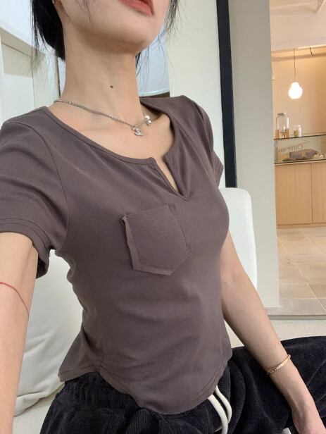 トップス Tシャツ ショート 半袖 スリットネック タイト スリム 細身 ストレート ストリート ポケット かわいい 大人可愛い きれいめ シンプル カジュアル おしゃれ かっこいい こなれ感 ラフ ボーイッシュ スポーティー ルーズ クール ナチュラル 無地 レディース 女性用 女の子 10代 20代 通勤 通学 デート お出かけ アウトドア キャンプ リゾート 旅行 海 プール ビーチ ジム 公園 休日 ショッピング カフェ 重ね着 普段使い 着回し フリーサイズ ホワイト ブラック ブラウン