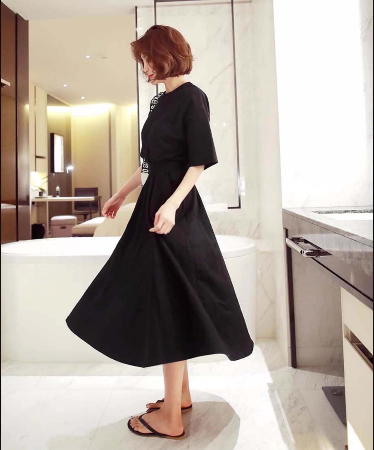 ワンピース レディース ロング 5分袖 ラウンドネック フレア Aライン フェミニン ウエストマーク ハイウエスト 切り替えデザイン かわいい 大人可愛い きれいめ シンプル カジュアル 上品 おしゃれ レトロ ラフ ガーリー ルーズ 無地 夏 ママ オフィス ビジネス OL 通勤 学生 デート お出かけ お泊まり アウトドア パーティー イベント リゾート 旅行 海 プール 女子会 休日 バカンス 韓国 コーデ 楽ちん 体型カバー 普段使い 着回し 定番 M L XL 2XL ゆったり ブラック グレー