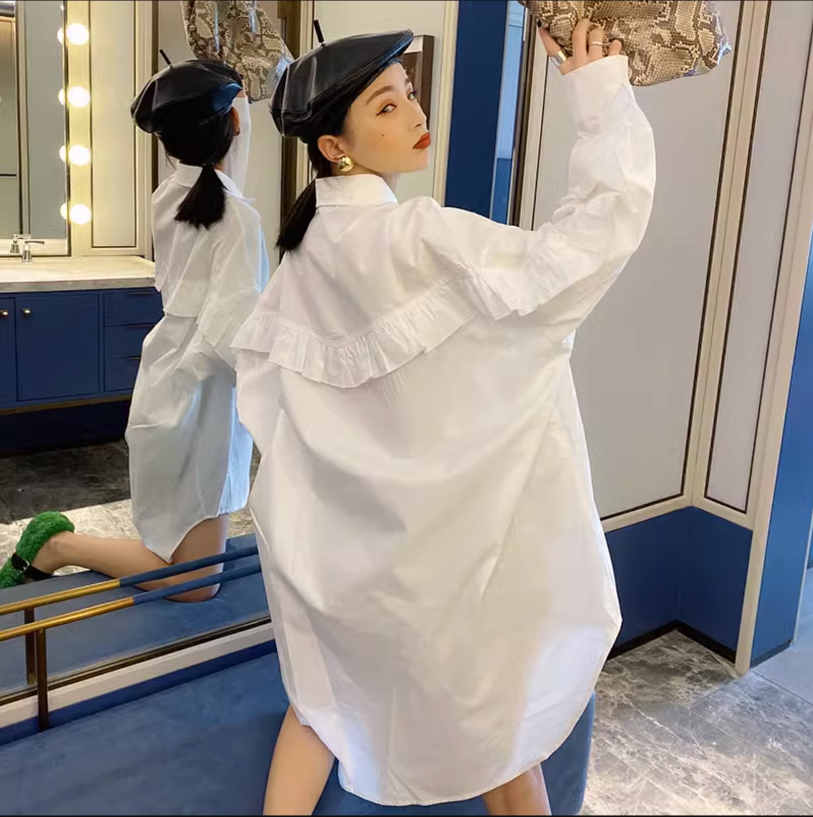 レディース ワンピース シャツ ブラウス 長袖 襟付き フリル かわいい 大人可愛い きれいめ シンプル カジュアル 上品 おしゃれ レトロ ラフ ガーリー ルーズ クール エレガント フォーマル 無地 春 秋 オフィス ビジネス OL 通勤 学生 デート お出かけ お泊まり パーティー イベント リゾート 旅行 女子会 休日 バカンス ライブ 重ね着 韓国 オルチャン コーデ 楽ちん 体型カバー 普段使い 着回し レイヤード トレンド ゆったり ゆる フリーサイズ オーバーサイズ ホワイト