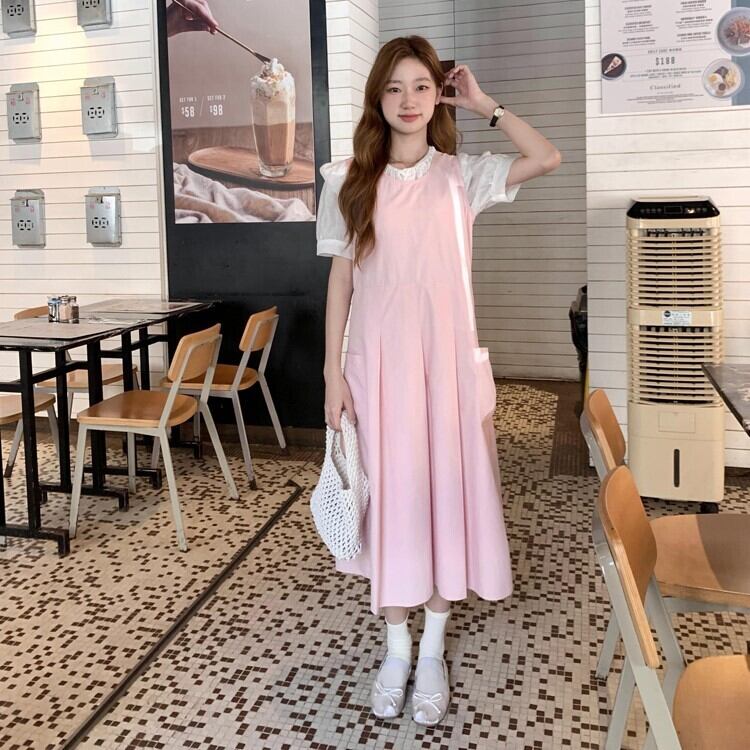 きれい色 レディース ワンピース サマードレス 膝下 ミディアム丈 ミモレ丈 袖なし ノースリーブ ラウンドネック Aライン タックフレア ウエスト切り替え サイドポケット かわいい 大人可愛い きれいめ シンプル カジュアル 上品 おしゃれ こなれ感 ガーリー キュート フェミニン 無地 春 夏 ママ 女の子 学生 学校 通学 デート お出かけ リゾート 旅行 ビーチ 女子会 休日 バカンス ショッピング カフェ 重ね着 韓国 オルチャン コーデ 体型カバー 普段使い レイヤード ワンサイズ ピンク