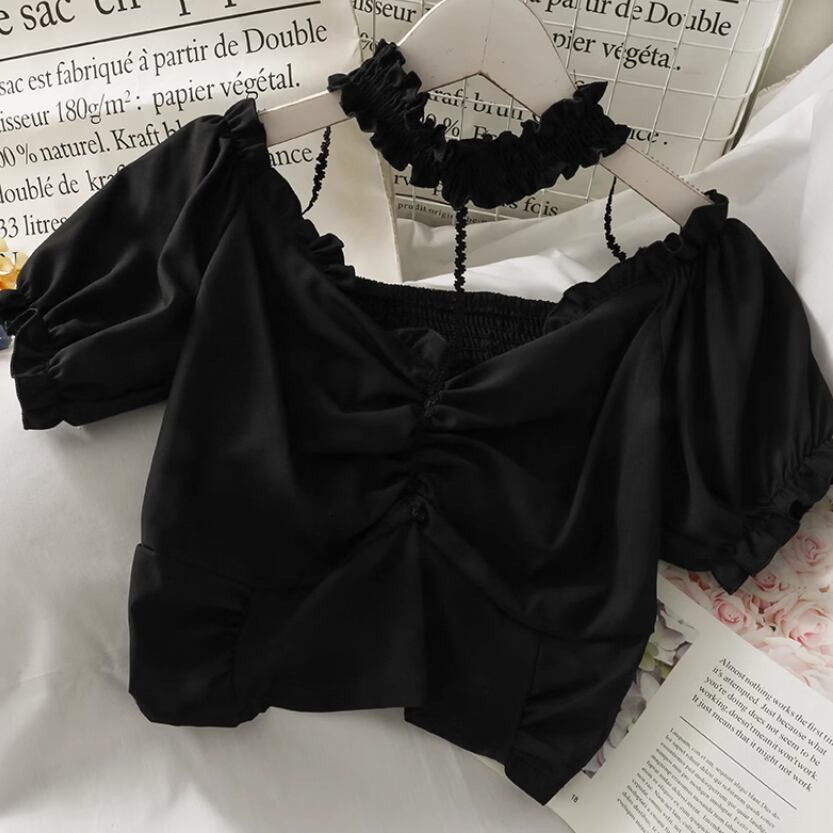 レディース トップス ブラウス カットソー ミニ ショート 半袖 パフスリーブ フリル袖 Vネック オフショルダー 襟なし フェミニン ふわふわ ふっくら ハイウエスト 伸縮性 ギャザー 薄手 かわいい 大人可愛い きれいめ カジュアル 上品 おしゃれ アジアン こなれ感 ラフ ルーズ 個性的 エレガント 主役級 とろみ感 抜け感 ラブリー キュート ロマンティック ナチュラル 無地 デート お出かけ アウトドア パーティー イベント リゾート 海 ビーチ 休日 バカンス フリーサイズ ホワイト ブラック