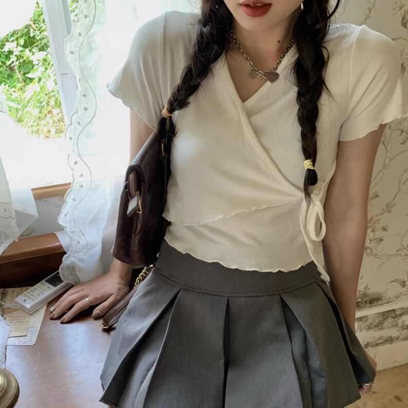 ショート丈でリボンがかわいい半袖トップス